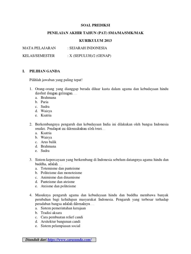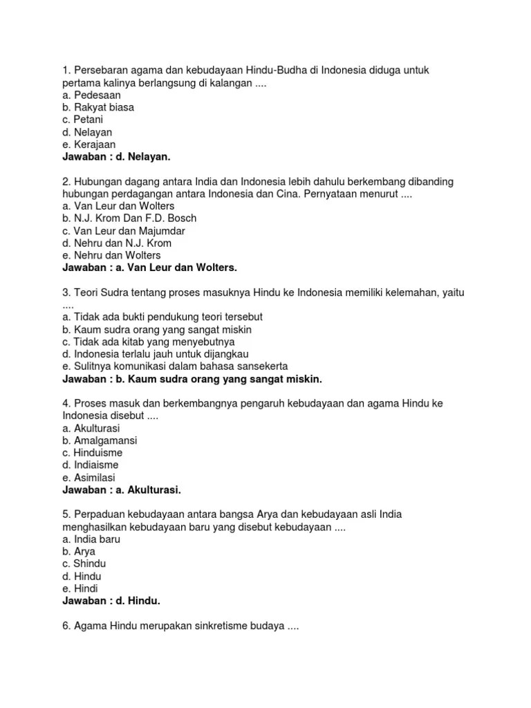 Soal Pilihan Ganda Tentang Masuknya Agama Hindu Budha Di Indonesia : Kunci Jawaban Soal Latihan Soal Uas Sejarah Kelas 10 Semester 1 Soal Pilihan Ganda Essay Halaman All Tribunpontianak Co Id : Agama hindu masuk ke indonesia dibawa oleh para pedagang india.. Agama hindu masuk ke indonesia dibawa oleh para pedagang india. Yang bernama aswawarman sudah menganut agama hindu. Dibawah ini akan disebutkan beberapa soal materi sejarah tentang apakah latar belakang masuknya agama hindu budha ke indonesia, saluran penyebaran agama . Mengapa agama hindu relatif lebih mudah masuk ke indonesia? Berikut, pola soal essay sejarah kelas 11 ipa semester ganjil dan kunci jawabannya.